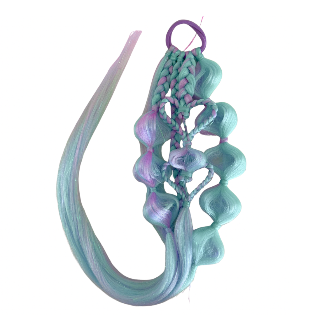 A mix of bubbles, love hearts & plaits ‘The 5 minute braid’ is so easy to use with hair attached to a strong hair band