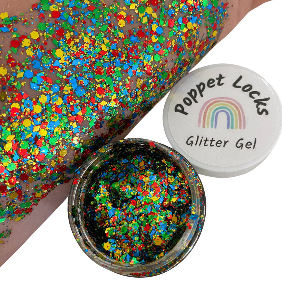 A multi mix of glitter makes it super sparkly, long lasting but easy to wash off using soap or shampoo.