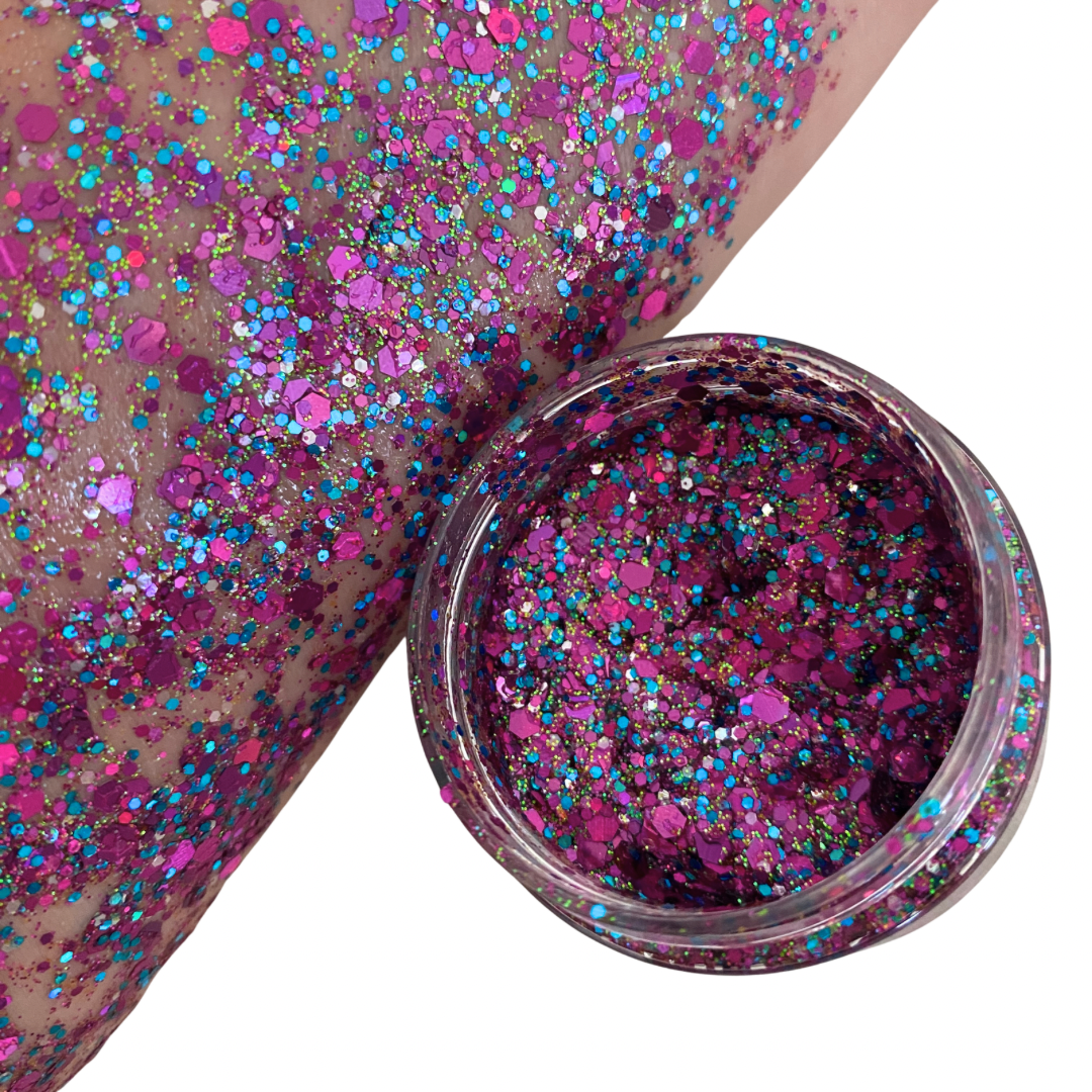 A multi mix of glitter makes it super sparkly, long lasting but easy to wash off using soap or shampoo.