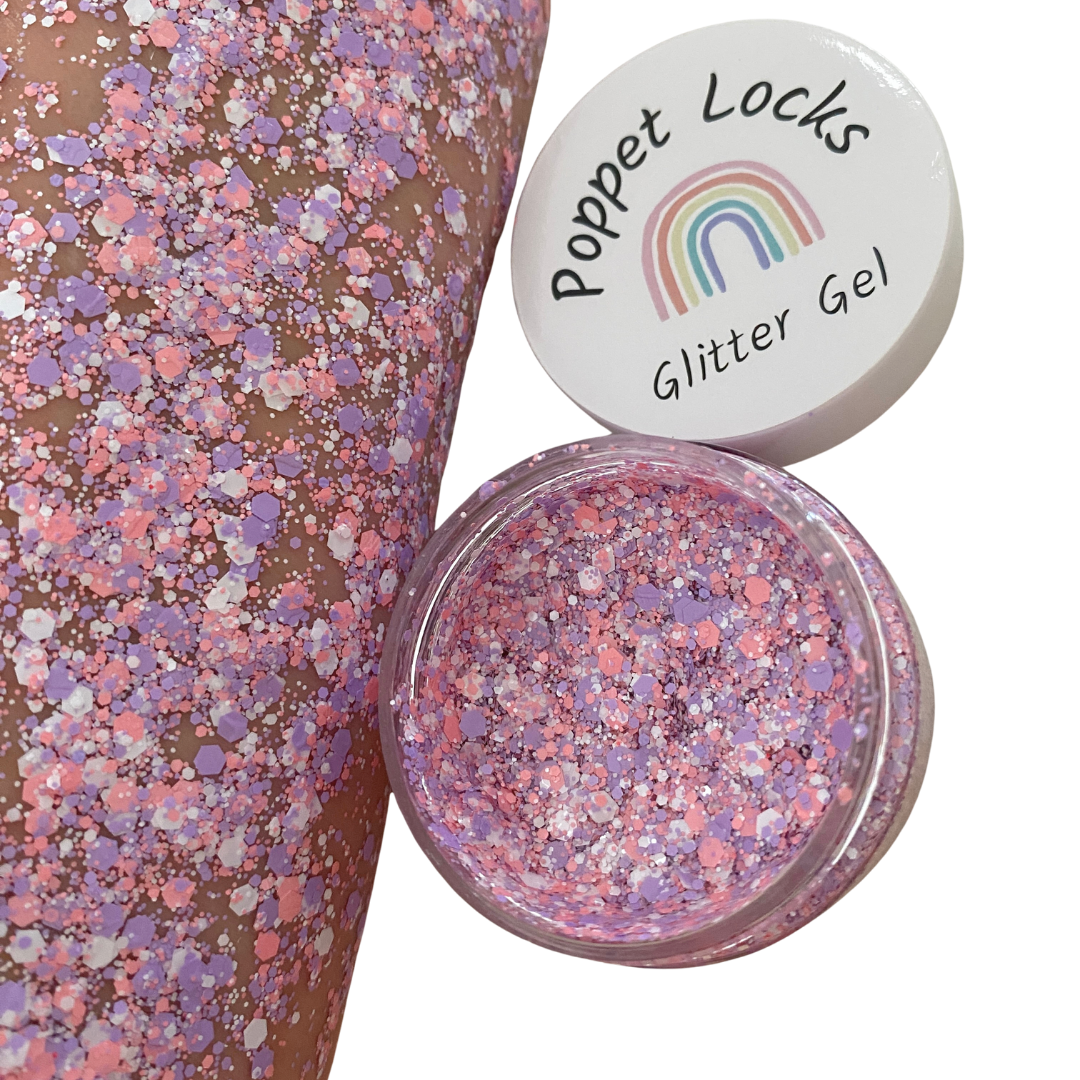 This gorgeous Pink & Purple and White glitter is long lasting but easy to wash off using soap or shampoo.