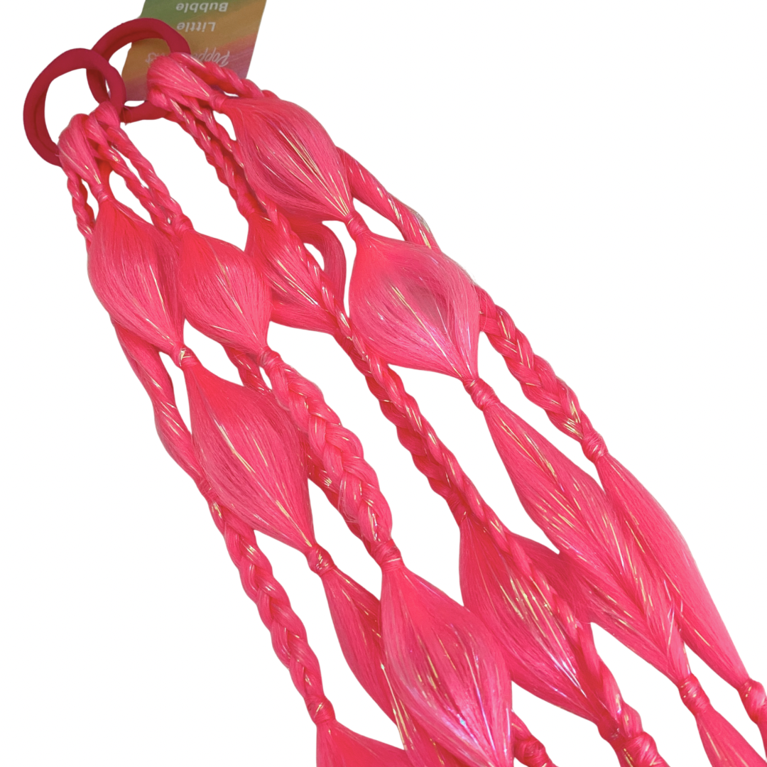Our original 16” Bubble Pony Set, designed by Poppet Locks in 2022, features two lightweight bubble ponytails attached to a secure elastic for quick and easy styling. These are a fun, playful alternative to traditional braids and create instant volume and texture with no styling skills needed.