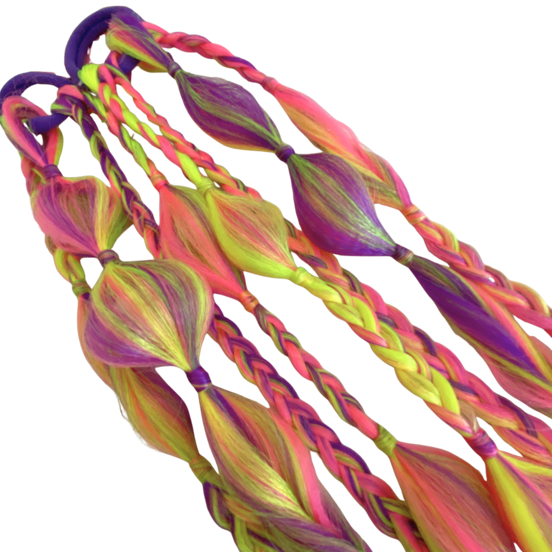 Perfect for kids, teens and adults. Popular for birthday parties, school carnivals, dance and cheer squads, netball and team colours, dress-up days, fancy dress, crazy hair day, festivals and rave outfits. Creates an instant statement look with fun movement and colour.