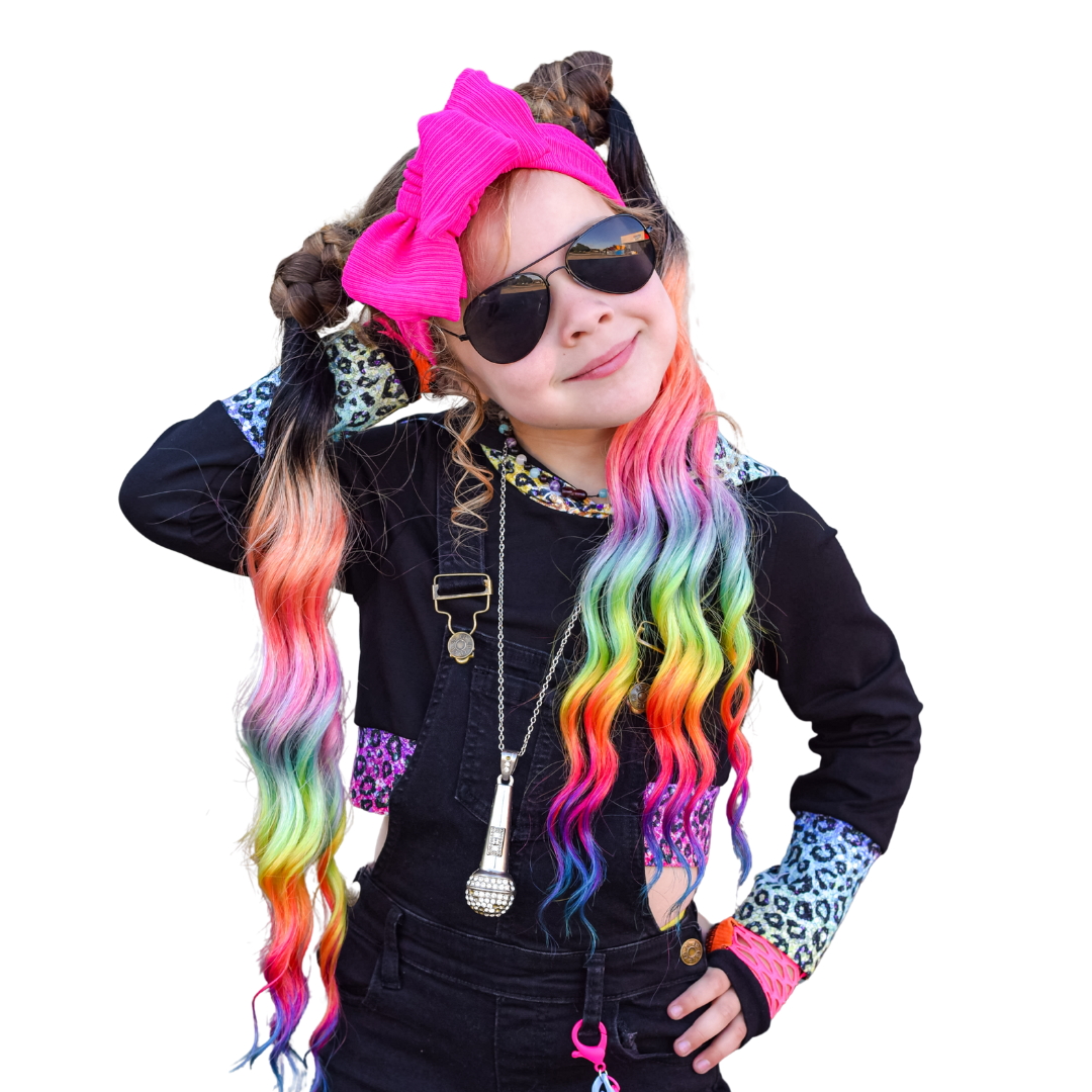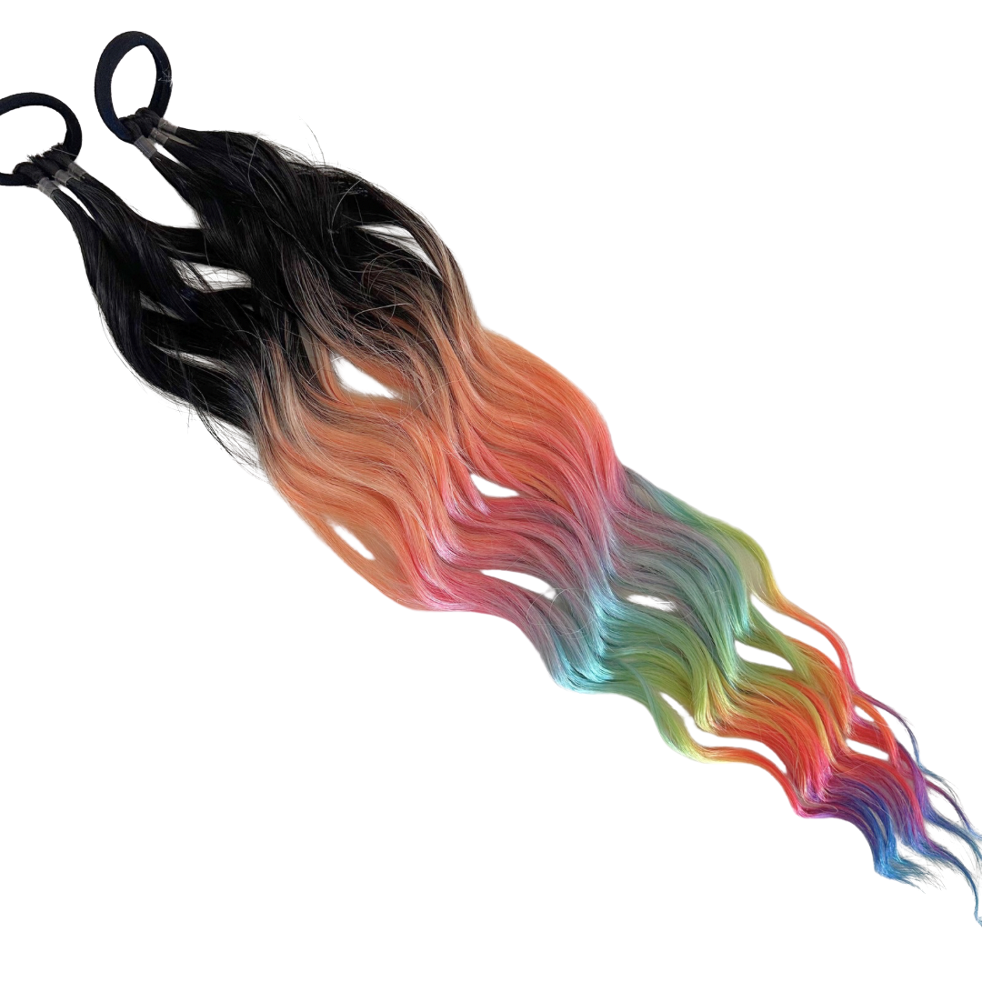 Wavy Ponytail Set - Long - Ombre Rainbow - 24" 2 pc